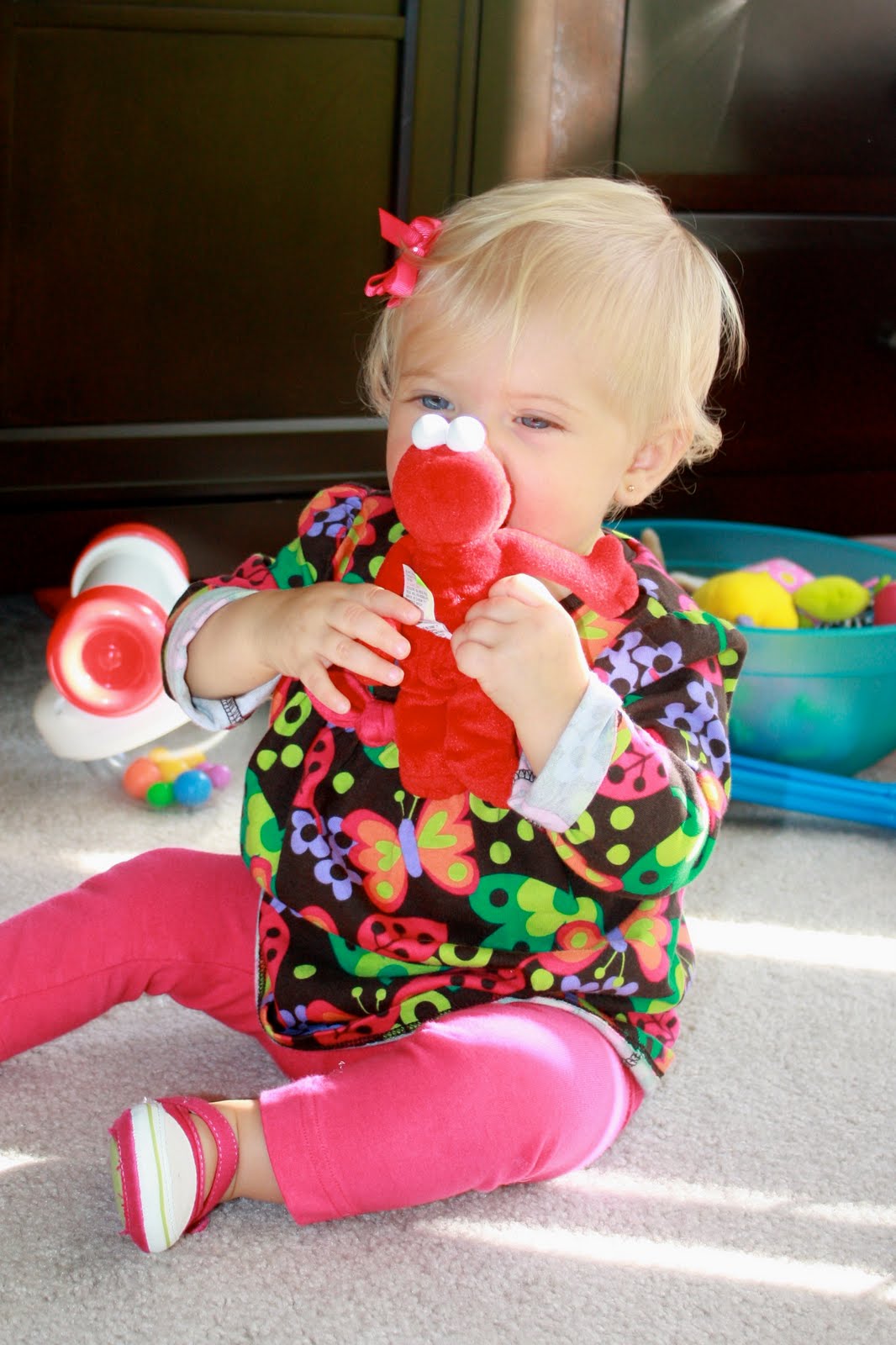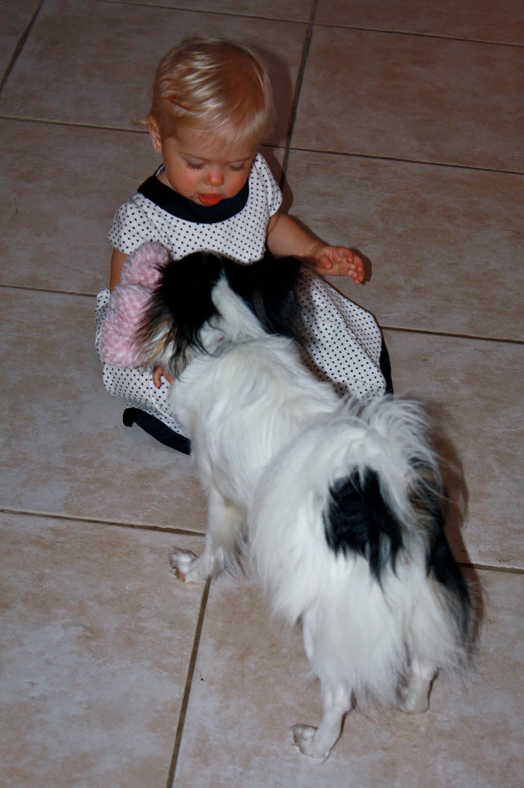 Sadie loves to be chased! She'll crawl away laughing, and then look back to make sure that you're chasing her. In the video below, she was trying to play this game with the dogs, but they were locked up. So funny!